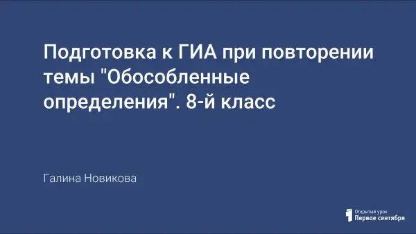 Урок проводится после изучения темы "Обособленные определения". При повторении темы обучающимся предлагаются практические задания, построенные по принципу ГИА - тестовые задания и сочинение-рассуждение на лингвистическую тему по предложенной цитате. Урок построен на экологическом содержании, что позволяет решить еще одну не менее важную задачу - формирование экологического мировоззрения, чувства ответственности за свое поведение в природе.