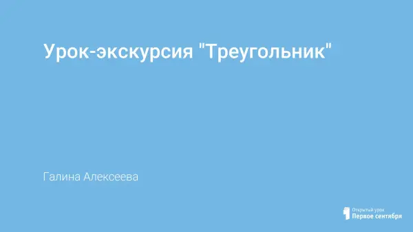Урок делится на две части: первая часть проходит в классе, вторая – экскурсия на улице. В ходе урока дети систематизируют имеющиеся знания о треугольниках; учатся находить треугольники и строить их модели; развивают умения пользоваться математическими терминами: вершина, сторона, угол, равносторонний.