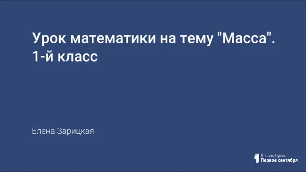 Представлен первый урок по теме «Масса» в 1-м классе. УМК «Перспектива», учебник математики Г.В. Дорофеева. На уроке обучающиеся знакомятся с величиной масса и единицами измерения массы. Измеряют массу с помощью лабораторных весов.