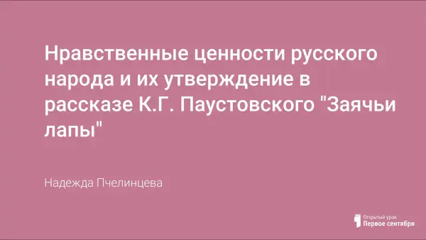На уроке обобщается нравственная проблематика и художественное своеобразие в рассказе К.Г. Паустовского "Заячьи лапы"; осмысливается проблема благодарности и вины; ученики работают над