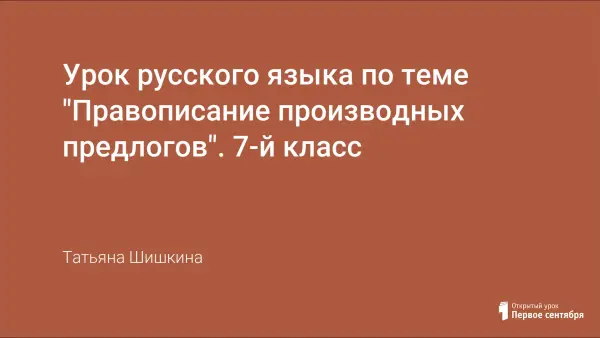 Урок русского языка по теме "Правописание производных предлогов". 7-й класс