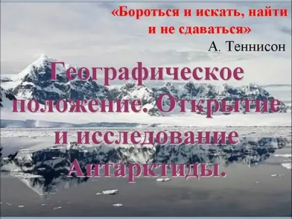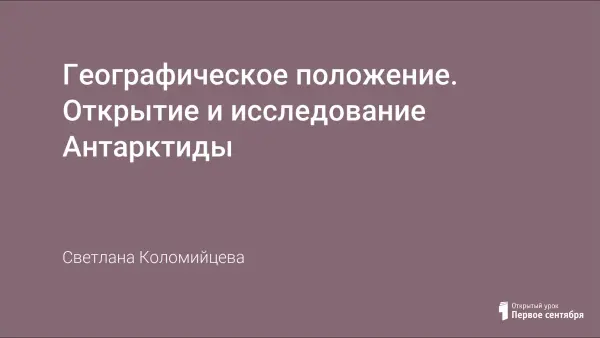 Урок проходит в три этапа: изучение географического положения Антарктиды, изучение истории открытия, изучение исследования Антарктиды.