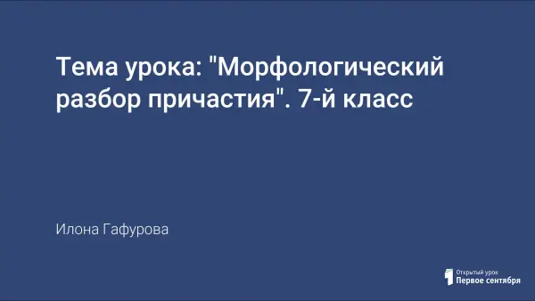 Тема урока: "Морфологический разбор причастия". 7-й класс
