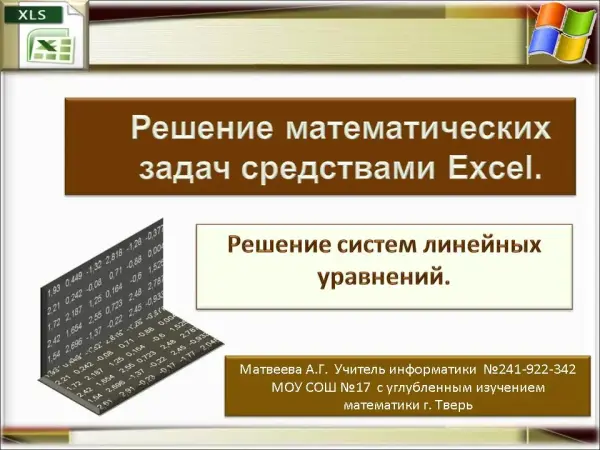 Ученики решают задачи нестандартным способом, применяя компьютерные технологии. Закрепляется умения работать с пакетом программ Microsoft Office, знания, навыки, полученные на уроках математики. В результате решения задач у учащихся формируется навык работы с табличными формулами, они знакомятся с возможностями Excel для решения уравнений и систем уравнений.