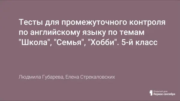Тесты для промежуточного контроля по английскому языку по темам "Школа", "Семья", "Хобби". 5-й класс