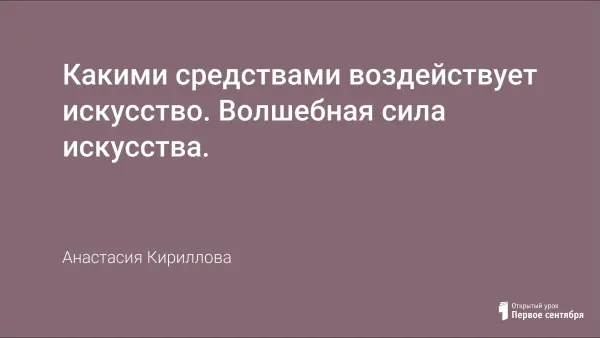 Урок по программе «Искусство». Цель: развитие опыта эмоционально-ценностного отношения к искусству и формирование метапредметных умений и личностных компетенций на художественном материале.