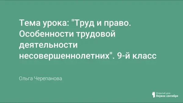 Урок применяет системно-деятельностный подход. Цель урока: формирование представлений учащихся о труде, трудовых правах несовершеннолетних, овладение основами трудового законодательства. В ходе исследовательской деятельности учащиеся знакомятся с результатами востребованности специальностей на рынке занятости населения, центра занятости, статистическими данными трудоустройства молодежи в летний период. Результатом должен стать осознанный выбор профессиональной деятельности.