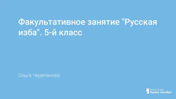 Факультативное занятие в рамках курса «Мы - славяне» помогает составить представление об устройстве русского быта, знакомит с предметами быта, с историей их возникновения: красный угол, скамья и лавка, стол - «божья ладонь», кадка, прялка и др. Итогом занятия станет составление макета внутреннего убранства русской избы. Для этого могут быть использованы предлагаемые материалы и собственная фантазия.