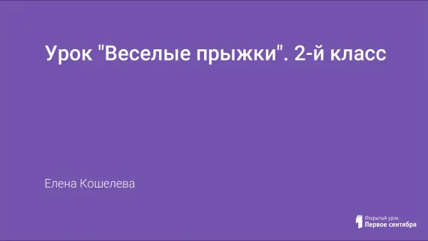 Урок отрабатывает технику прыжков в игровой форме. В течение урока формируется позитивное отношение к движениям, развиваются скоростно-силовые и координационные способности. Прыжки ‒ естественное движение, в котором дети выражают радость, развивают интерес к физической культуре.