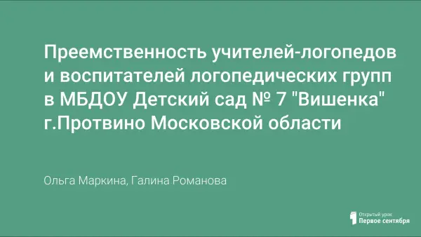 В настоящее время в дошкольных учреждениях вопросу преемственности в работе узких специалистов уделяется особое внимание. Только при тесном сотрудничестве и единстве требований педагогов возможно преодоление имеющихся у детей дефектов речевого развития. Совместная коррекционная работа в логопедических группах предусматривает решение задач, при которых учителя-логопеды формируют первичные речевые навыки у детей с нарушениями речи, а воспитатели закрепляют сформированные речевые навыки.