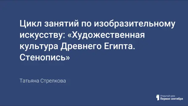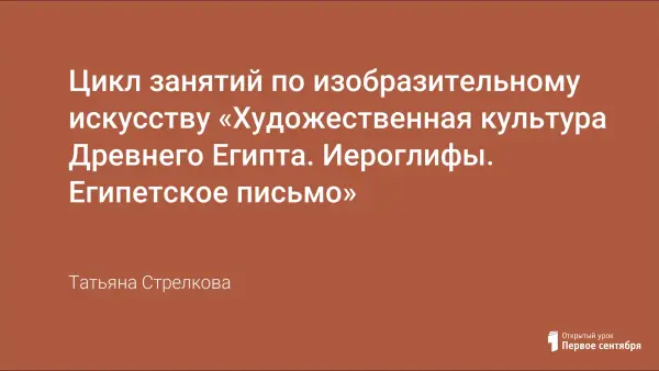 Цель занятия: познакомить учащихся с художественной культурой Древнего Египта, показать ее своеобразие, изучить творения древнеегипетских живописцев — настенные росписи, познакомить с канонами изображения, а также научить работать с изображением, построенным с помощью эскизной сетки для соблюдения пропорций.