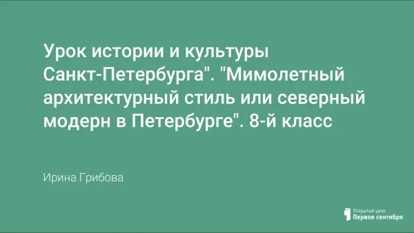 Урок проводится как итоговый в разделе «Архитектурные стили Санкт-Петербурга». На уроке учащиеся могут применить полученные знания на практике в ходе блиц-турнира, изучение нового материала и закрепление объединяются. Урок формирует эстетические вкусы учащихся, воспитывает любовь к родному городу, формирует способность решать творческие задачи.