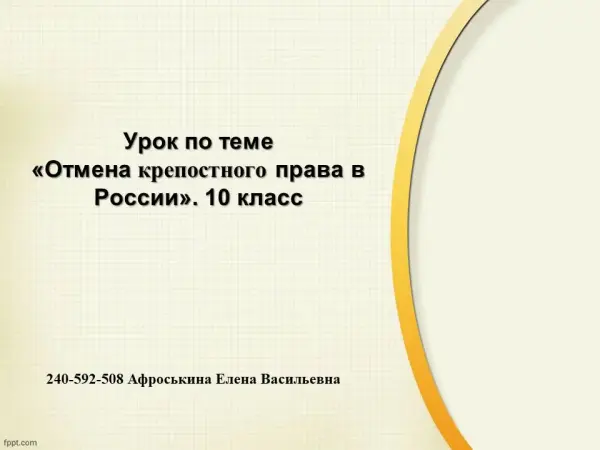 Урок истории по теме "Отмена крепостного права". 10-й класс