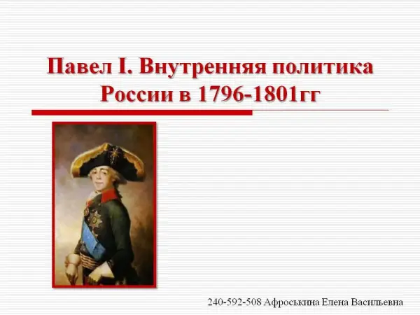 Урок по теме «Павел I. Внутренняя политика России в 1796–1801 гг.» 7-й класс
