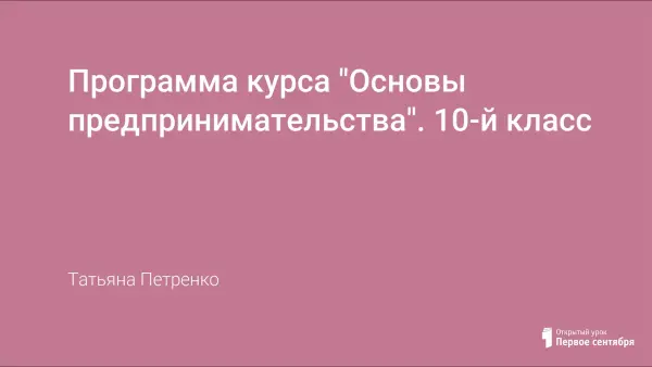 Программа составлена и воплощается в рамках проекта "Предпринимательский всеобуч", проводимого в Ростовской области. Программа элективного курса рассчитана на учащихся 10-х классов.