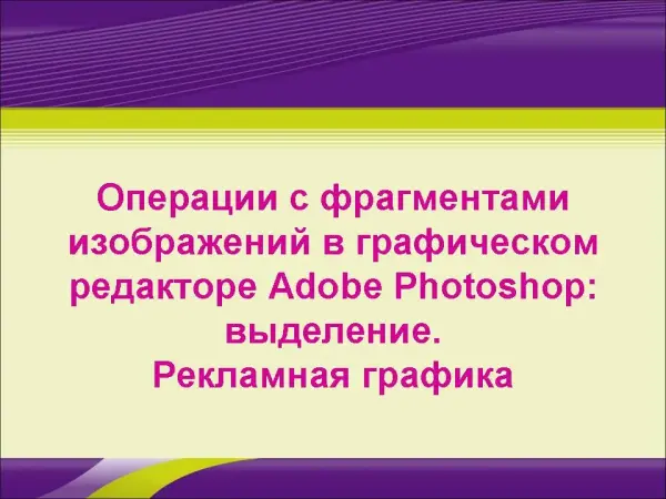 Учебное занятие «Операции с фрагментами изображений в графическом редакторе Adobe Photoshop: выделение. Рекламная графика» состоит из двух частей. Первая часть – повторение теоретических сведений по теме и изучение основных принципов создания рекламы, вторая часть – совершенствование умений использования инструментов выделени в рекламной публикации.