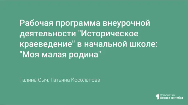 Рабочая программа внеурочной деятельности "Историческое краеведение" в начальной школе: "Моя малая родина"