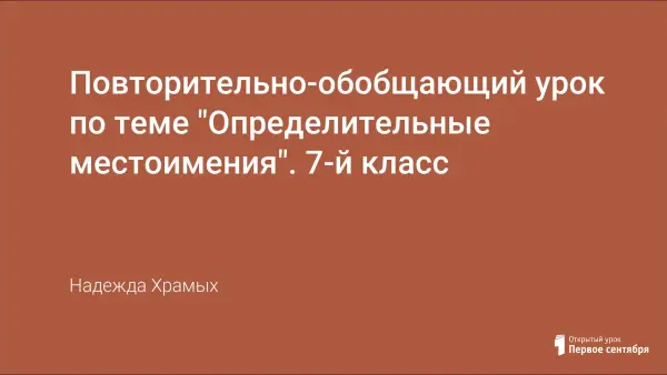 Урок построен в системе деятельностного подхода. Формирует регулятивные, предметные, личностные, коммуникативные универсальные учебные действия: систематизацию знаний о местоимении; умения и навыки нахождения определительных местоимений в тексте, употребление в речи, воспитание активного и сознательного отношения к изучению русского языка; воспитание любви к родине, чтению книг.
