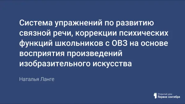 Формирование и развитие речевых умений происходит при выполнении целого ряда упражнений, в частности на основе восприятия произведений живописи. Картина служит одним из эффективных средств развития речи у умственно отсталого школьника и формирования у них коммуникативно-речевых умений. Эти упражнения обогащают опыт речевой деятельности учащихся с недоразвитием интеллекта при правильной методической организации на всех этапах.