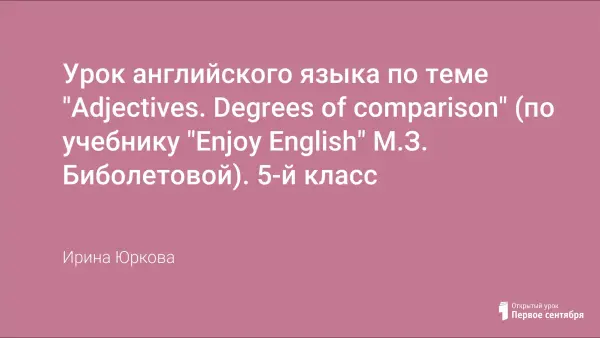 Урок обобщает грамматический материал по теме «Прилагательные, степени сравнения прилагательных», практикует учащихся в устной и письменной речи, стимулирует их желание общаться, высказывать свои мысли на английском языке, прививает учащимся интерес к английскому языку. Урок сопровождает презентация, состоящая из 14 слайдов.