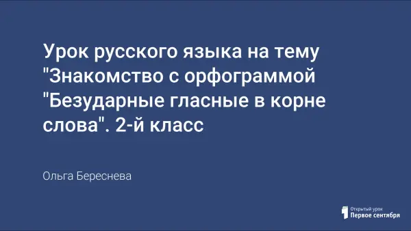 На уроке использована эффективная методика знакомства учащихся с новой орфограммой «Обозначение безударных гласных в корне гласными буквами». Ее можно использовать на уроках русского языка во 2-м классе по разным УМК. Ученики сами определяют признаки орфограммы, способы проверки. Учатся использовать их при обнаружении и правописании орфограммы в словах, предложениях при зрительном и слуховом восприятии языкового материала.