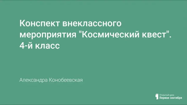 Интерес к Космосу пробуждается у человека весьма рано, загадки Вселенной будоражат воображение всегда, с раннего детства до старости. Космонавтика прочно вошла в нашу повседневную жизнь и принесла человечеству много преимуществ. Разработанный конспект классного часа «Космический квест» поможет обобщить и систематизировать представления детей о космосе, солнечной системе, будет способствовать развитию речи, памяти, мышления, наблюдательности, воображения, творческих способностей.