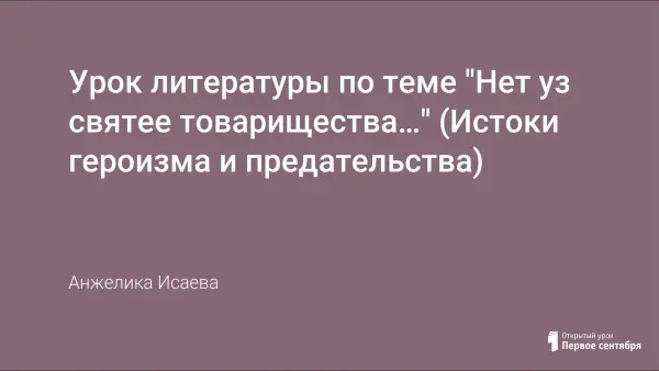 Конспект урока литературы в 7-м классе затрагивает нравственные вопросы о героизме и предательстве. Задачи урока: придать занятию проблемно-творческий характер; в процессе беседы проанализировать характеры героев, осмыслить трагический конфликт произведения; способствовать формированию активной жизненной позиции, умения отстаивать собственную точку зрения; развивать у учащихся творческую активность через различные формы и виды работы.