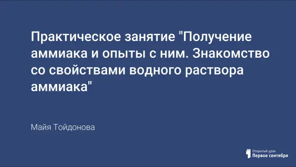 Практическое занятие "Получение аммиака и опыты с ним. Знакомство со свойствами водного раствора аммиака"