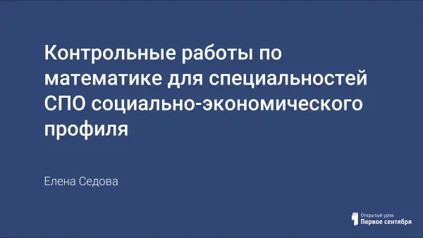 Контрольные работы проверяют знаний и умения студентов, обучающихся в образовательных учреждениях СПО по специальностям социально-экономического профиля. Тема работ соответствует учебным дисциплинам "Математика" как общеобразовательного, так и математического и естественно-научного циклов.