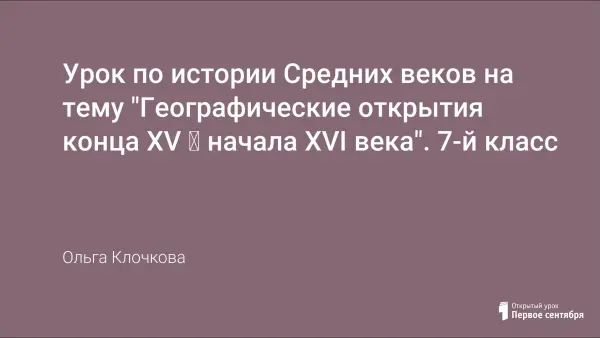 Урок по истории Средних веков на тему "Географические открытия конца XV ‒ начала XVI века". 7-й класс