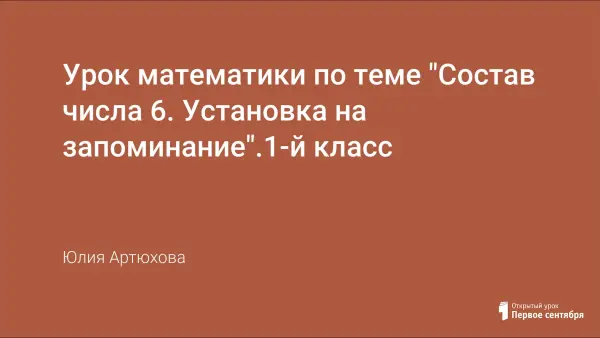 Цель: усвоение учащимися состава числа 6. Урок включает 4–7 видов учебной деятельности, не менее трех видов преподавания, физкультминутки, приемы, направленные на создание благоприятного психологического климата, в содержательную часть урока включены вопросы о здоровье и здоровом образе жизни.