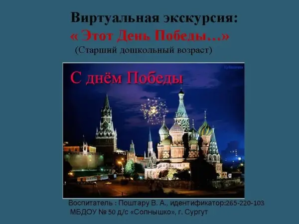 Разработанное мною занятие закрепляет и расширяет знания детей о празднике - Дне Победы и мероприятиях, посвященных этому празднику: военном параде, встречах ветеранов, праздничном салюте; обогащает словарь детей словами: война, победа, солдаты, военные, армия, победители, парад, вечный огонь, ветераны; развивает связную речь детей при ответах на вопросы воспитателя. Занятие предназначено для воспитателей детских садов и может использоваться педагогами накануне празднования Дня Победы.