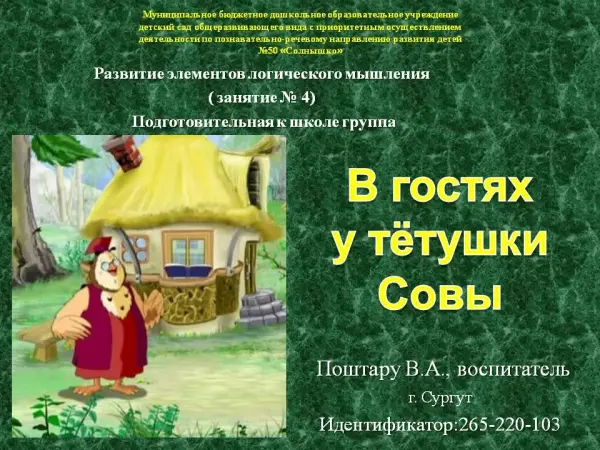Презентация НОД по программе «Развитие» в разделе «Развитие элементов логического мышления» для детей старшего дошкольного возраста с 6 до 7 лет к занятию по РЭЛМ № 4 учит детей троить пространственную модель отношений между понятиями в форме классификационного древа; закрепляет действие по использованию модели классификационных отношений между понятиями.