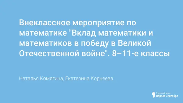 Внеклассное мероприятие по математике "Вклад математики и математиков в победу в Великой Отечественной войне". 8–11-е классы