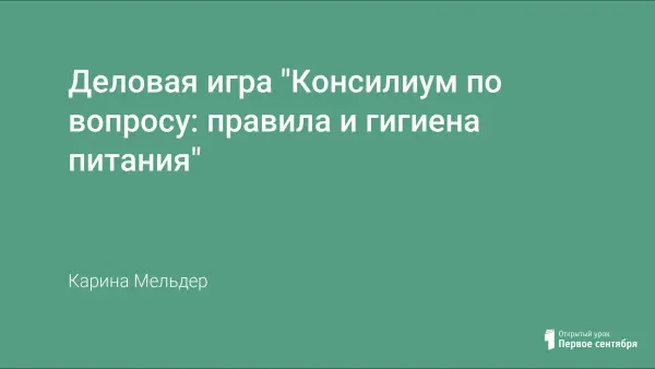 Урок проводится в форме деловой игры по правилам и гигиене питания. Дети, работая в группах, составляют памятку для школьников о правилах питания.
