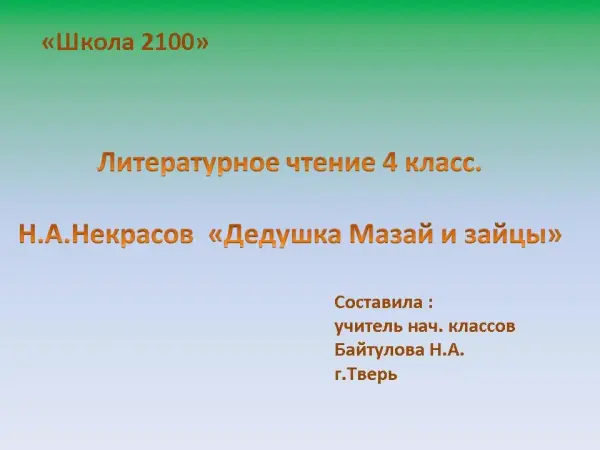 Урок посвящен жизни и творчеству Н.А. Некрасова. Развивает умения слушать художественное слово, выражать свои чувства по отношению к прочитанному.