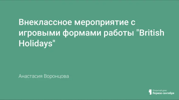 Мероприятие знакомит учащихся начальной школы с традициями, обычаями и символами разных праздников в Великобритании. Проходит небольшой конкурс. Мероприятие сопровождается презентацией.