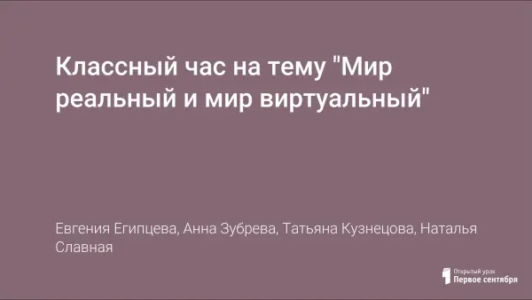 Цель классного часа: научить правильному использованию компьютера и сотовых телефонов, чтобы не быть затянутым в виртуальный мир; выяснить значение и расширить знания о виртуальном и реальном мире; активизировать размышления о негативных и позитивных сторонах виртуальной жизни.