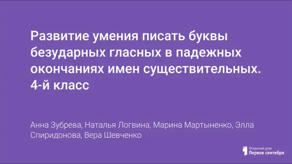 Развитие умения писать буквы безударных гласных в падежных окончаниях имен существительных. 4-й класс