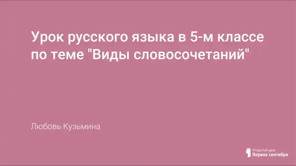 Изучаются виды словосочетаний, создаются возможности для развития личности: для решения познавательных задач, реализации творческого потенциала. Учащиеся выполняют практические задания: выделяют словосочетания из предложения, определяют их вид, морфологические признаки. Урок способствуют умению определять орфограммы, знать, что такое словосочетание, их структура, устанавливать смысловую связь между главным и зависимым словом, устанавливать грамматическую связь с помощью окончания и предлога.