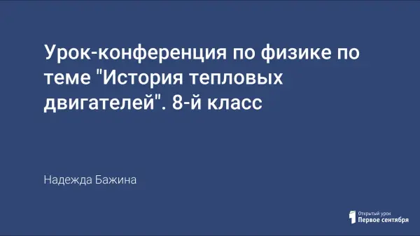 Урок знакомит с историей возникновения тепловых двигателей. Учащиеся выступают с докладами об истории возникновения тепловых двигателей, каждое выступление сопровождается презентацией.