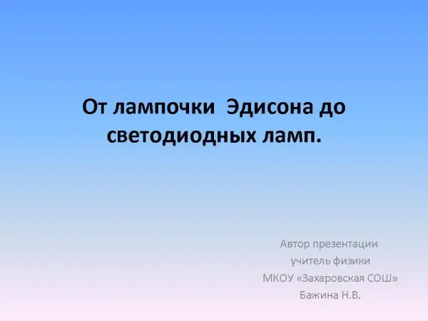 Урок формирует новые знания по теме с целью изучить устройство и принцип работы лампы накаливания и светодиодной лампы.