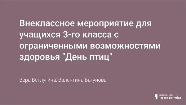 Внеклассное мероприятие знакомит детей с новым словом орнитология; развивает музыкальный слух, чувство ритма; воспитывает у детей любовь к природе, птицам, бережное отношение к ним, дружеские отношения, чувство коллективизма.