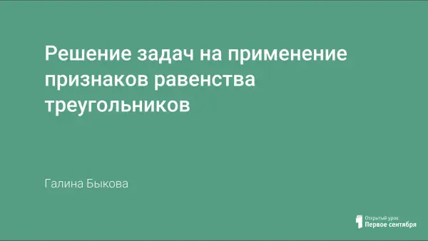 На уроке повторяется теоретический материал для его практического применения при решении задач; отрабатываются навыки решения задач на применение признаков равенства треугольников; рассматривается решение задач, когда один из треугольников частично накрывает другой.