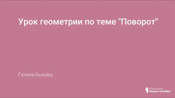 Цели урока: ввести понятие поворота и доказать, что поворот есть движение; рассмотреть поворот отрезка, в зависимости от центра поворота (центр поворота лежит вне отрезка, на отрезке и является одним из концов отрезка); научить построению отрезка при повороте его на данный угол; проверить усвоение материала, изученного на предыдущих уроках и материала, пройденного на этом уроке.