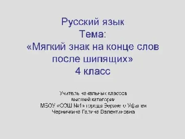 Урок проводится в соответствии с ФГОС НОО второго поколения. Цель урока: запомнить написание мягкого знака на конце слов после шипящих.
