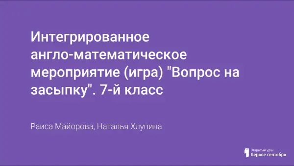Англо-математическая игра «Вопрос на засыпку» активизирует математические способности учащегося в изучении иностранного языка. Развивает интерес учащихся к знаниям, совершенствует математические умения и навыки, активизирует и автоматизирует лексические единицы по английскому языку.