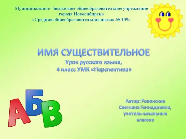 Урок русского языка по теме "Имя существительное. Обобщение и систематизация материала". 4-й класс
