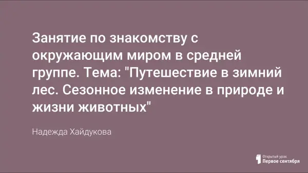 Занятие проводится в средней группе закрепляет знания признаков зимы, сезонных изменений в природе, жизни животных и птиц.