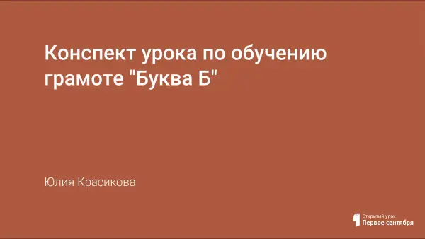 Цели урока: выделять звук и [б], [б’] из слов, устанавливать, что звук [б] согласный, твердый, звонкий, звук [б’] согласный, мягкий, звонкий; распознавать в словах новый звук; характеризовать их, обозначать буквой.